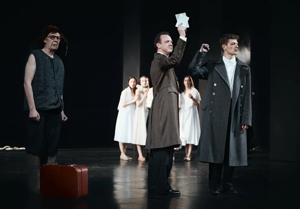 В спектакле заняты недавние выпускники Школы-студии МХАТ (мастерская Евгения Писарева) и ГИТИСа (мастерская Юрия Бутусова), молодые артисты труппы театра: Руслан Чагилов, Назар Сафонов, Евгения Леонова, Ян Сибряев, Ляля Анпилогова и другие.