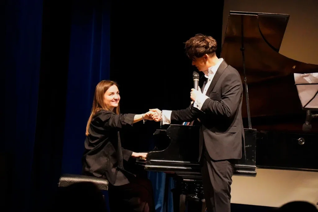 Поэтическую составляющую вечера представила Другая Эм. Со сцены прозвучали ее стихотворения из сборника «Красота»: бунтарские и лиричные, полные рефлексии и светлой грусти. Особенностью программы стало их новое звучание в сопровождении классической музыки Шопена, Шуберта и Рахманинова, что придало строкам особую глубину. Как всегда, на концерте Эммы нашлось место для импровизации, подтверждая ее же принцип: «Мы никогда не знаем, чем все закончится».