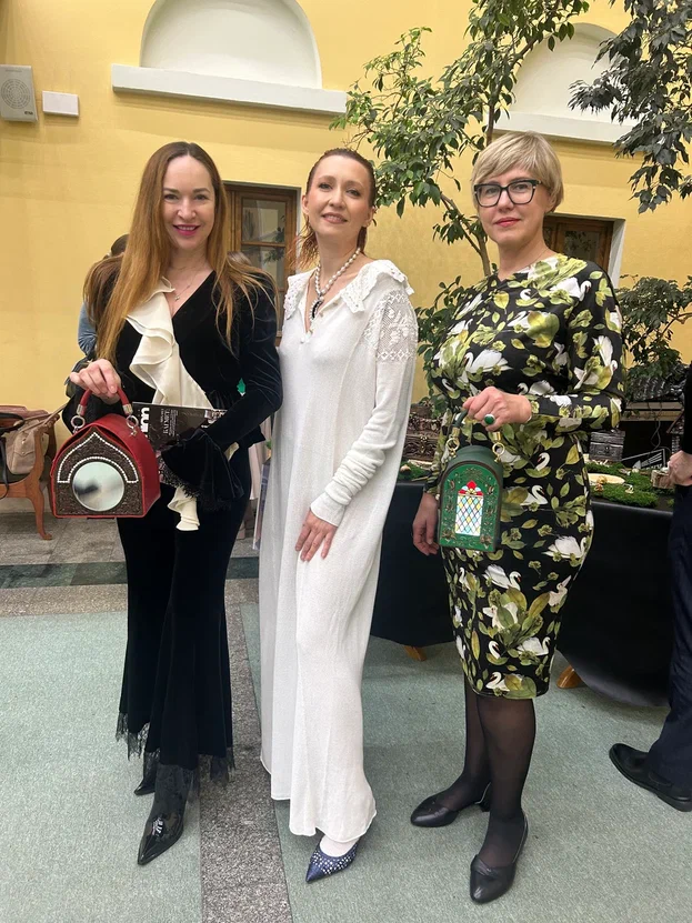Параллельно с поэзией гости погружались в мир визуального искусства в фойе музея, где была представлена выставка оригинальных арт-объектов дизайнера Аллы Балагур. Экспозиция включала сумочки-предметы из дерева ручной работы из коллекции «Барышня-Крестьянка», созданной к 20-летнему юбилею творческого пути дизайнера. Каждый объект — это история: сумочка-домик с зажженным светом внутри, сумочка-ведро, сумочка-сундук, посвященная рукоделию. Коллекция, посвященная детству дизайнера и жизни в деревне, символически разделена на четыре времени суток и плавно подготовила зрителей к атмосфере концерта.