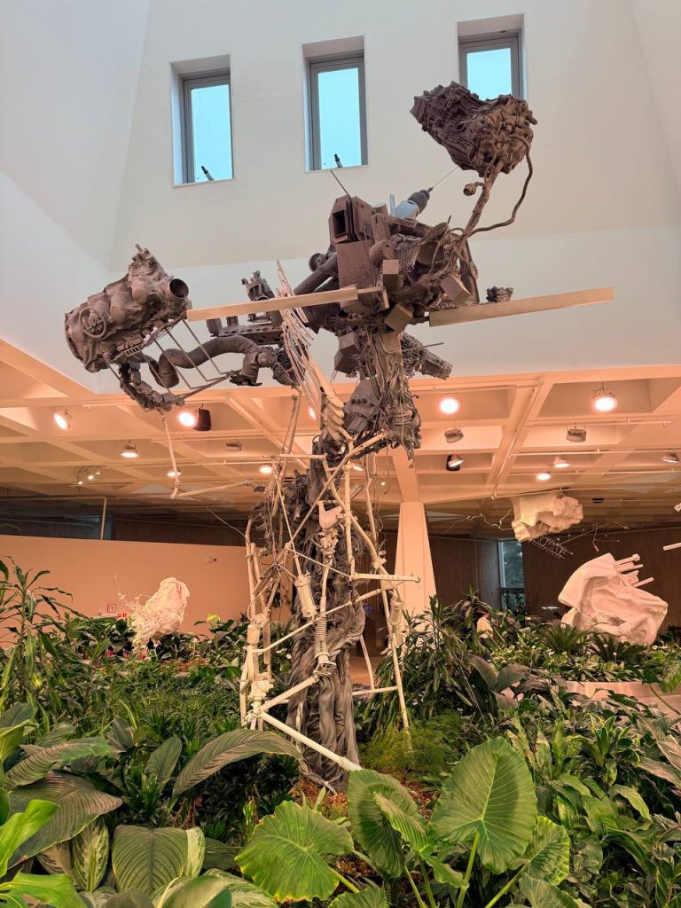 Первое, что встречает посетителей, — арт-инсталляции Дмитрия Каварги. Известный художник, автор громких проектов в Иваново и Московском музее транспорта, создал здесь работы-предупреждения. Гибридные формы иллюстрируют идею природы, медленно, но необратимо поглощающей техногенные объекты. Сталь, пластик и провода прорастают органическими структурами. Особый интерес вызывает тот факт, что проект создан в коллаборации с учеными и инженерами, превращая художественный вымысел в почти научную модель возможного будущего.