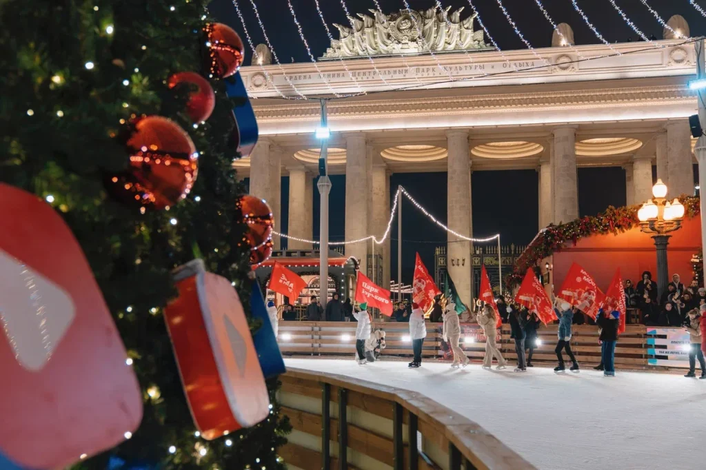 Каток в Парке Горького всегда был местом притяжения для жителей и гостей столицы. В этом году с 1 декабря ледовая площадка впервые появилась перед Аркой Главного входа. В центре искусственного катка посетителей встречает сияющая новогодняя ель. Также на катке разместилось место для отдыха с костровой зоной.