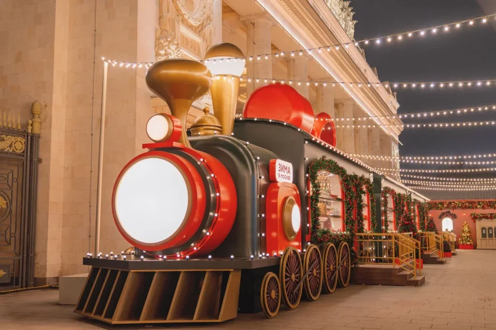 Центральным объектом катка стал павильон проката, стилизованный под здание вокзала. От него «отправляется» новогодний поезд с вагонами, внутри которых разместились магазины и праздничные лавки. В павильоне проката находится уже традиционная для катка в Парке Горького Медиарубка – студия со звукоизоляцией с окном на каток, по выходным здесь будут выступать молодые исполнители и диджеи, а звук будет транслироваться на весь каток. Во время сеансов, когда для пенсионеров действует скидка, на катке звучит специальный ретро-плейлист. Вторая Медиарубка разместилась на Ленинской площади на ярмарочной зоне. Рядом также установлены беседки-«остановки» для отдыха и встреч, ярмарочная площадь с праздничными шале, фотозоны, а также на площади разместился арт-объект «Обратный отсчет» — символ приближения праздника.