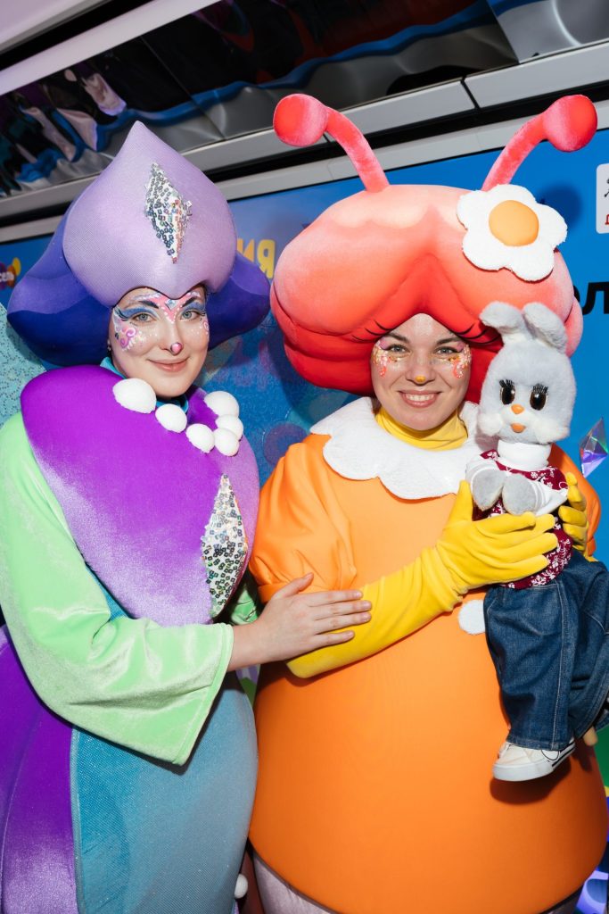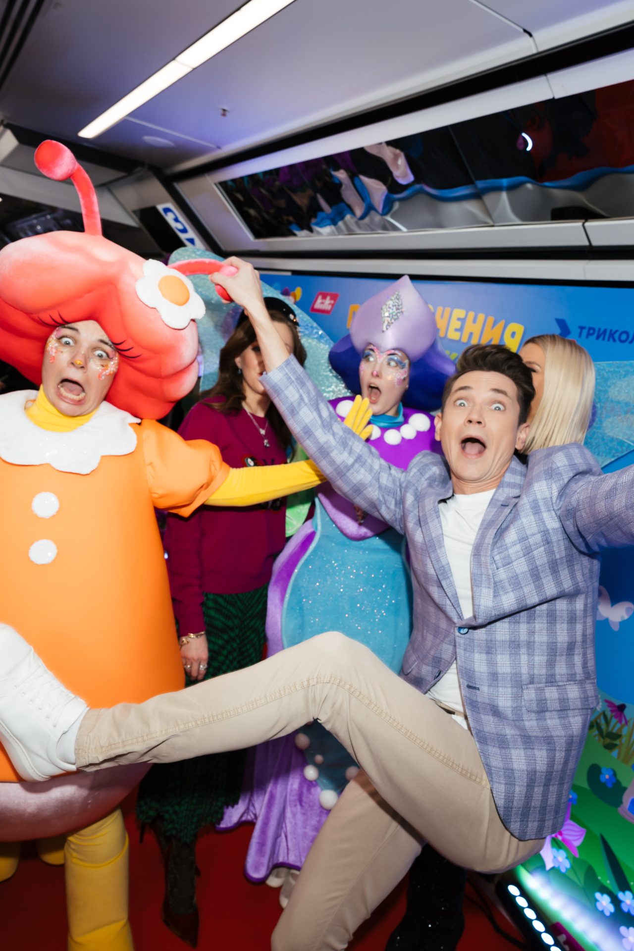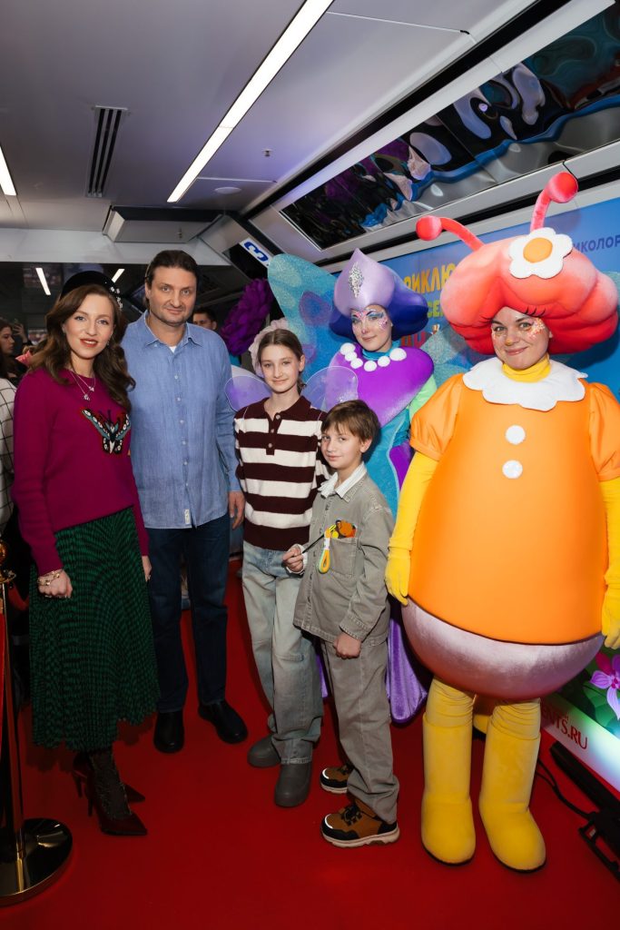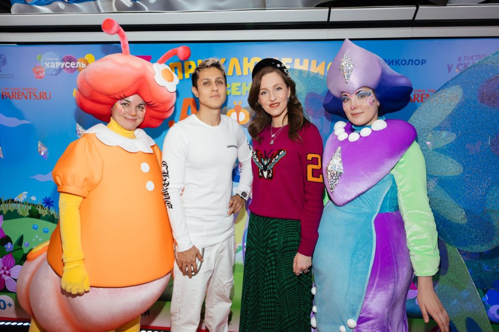 Юлия Барановская, Анастасия Макеева, Антон Зорькин и Степашка на премьере анимационного сериала “Приключения гусенички Анфисы” в ЦДМ.