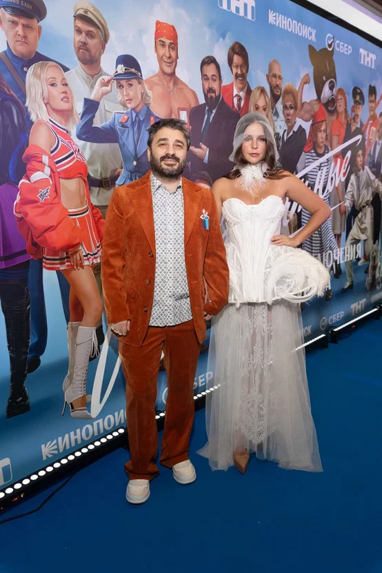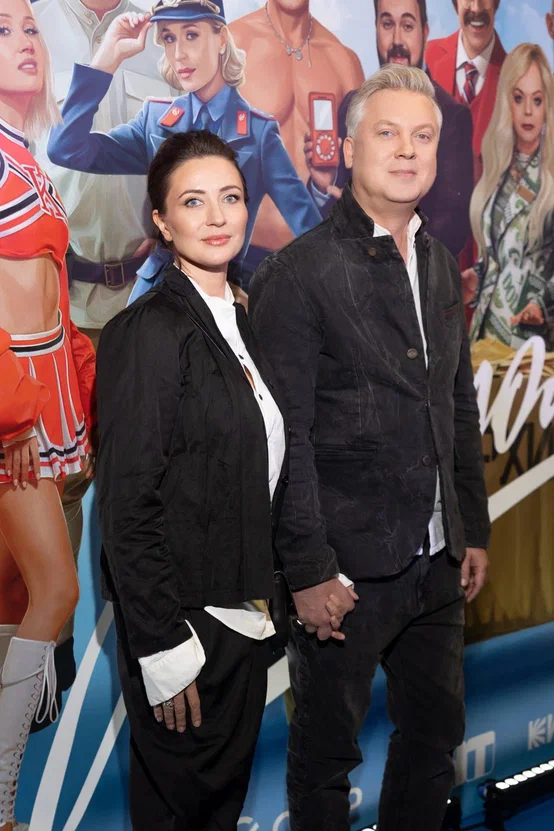 Павел Воля и Ляйсан Утяшева появились на премьере в образах в стиле фильма — подготовились. На красную дорожку стильные супруги вышли не сразу. Сначала они продефилировали мимо журналистов, но потом присоединились к еще одной редкой паре на светских мероприятиях — Сергею Светлакову с женой Антониной.
