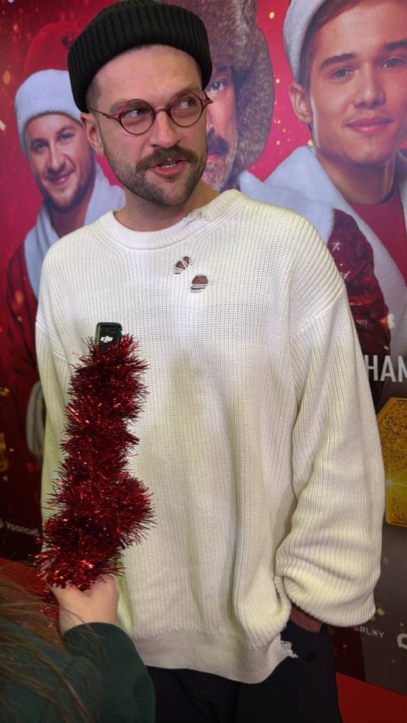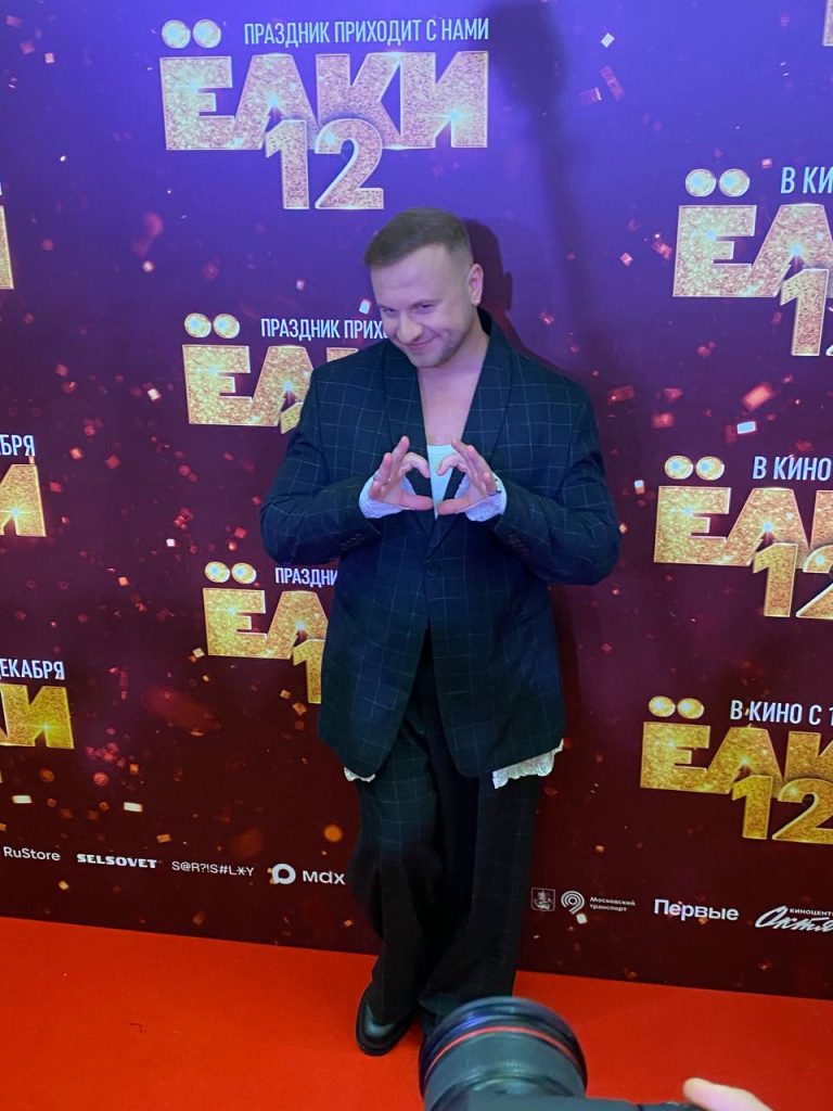 «Судя по тому, что вы пришли на „Елки 12“, с зарубежным контентом в наших кинотеатрах совсем ж*па. Снявшись единожды в „Елках“, ты подписываешь контракт с дьяволом. Я благодарю свою алчность, иначе сегодня не на кого было бы вам любоваться. Благодарю продюсерский комплекс за возможность заработать на лекарства. Хоть убей, не понимаю, что за люди приклеены рядом на афише», — комично заявил он со сцены.