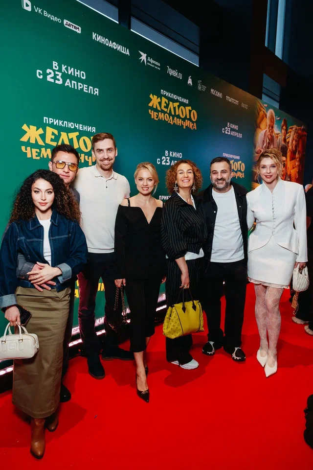 11 апреля в кинотеатре «Синема Парк Мосфильм» состоялась премьера семейной комедии «Приключения желтого чемоданчика». За производство проекта отвечала Киностудия Горького, входящая в Московский кинокластер, совместно с «Кинокомпанией братьев Андреасян». Картина выйдет в широкий прокат 23 апреля. Дистрибьютор — «Атмосфера кино».