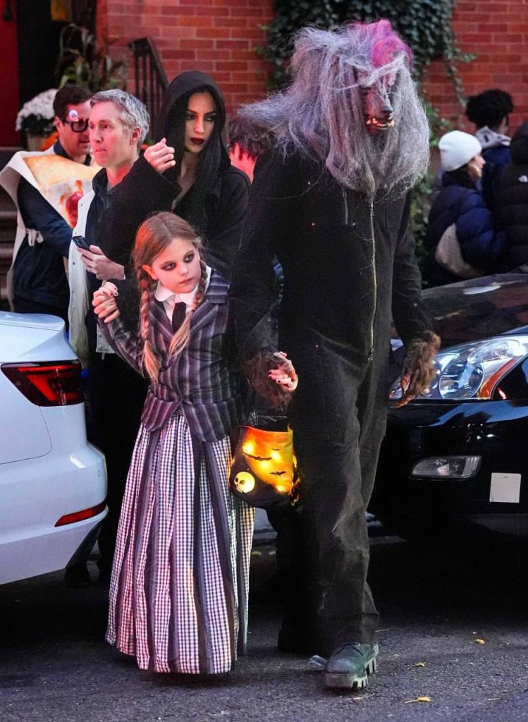 Ирина Шейк, перевоплотилась в Мортишу Аддамс. Их дочь Лея поддержала семейную тематику, нарядившись в Уэнсдей Аддамс. Брэдли Купер, как и в прошлом году, предпочел более неформальный образ — на этот раз в виде лохматого волка, хотя мог бы стать Гомесом Аддамсом.