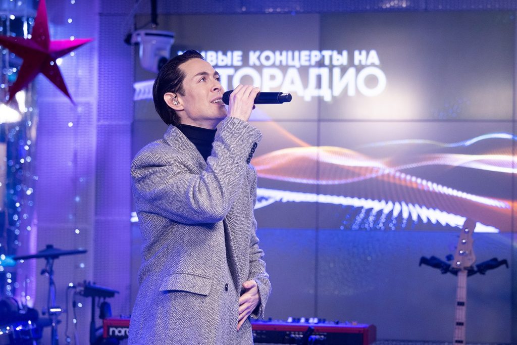 Артист тепло поздравил слушателей «Авторадио» с наступающим Новым годом и подарил им песню «Позвони мне, я волнуюсь», исполнив ее в прямом эфире.