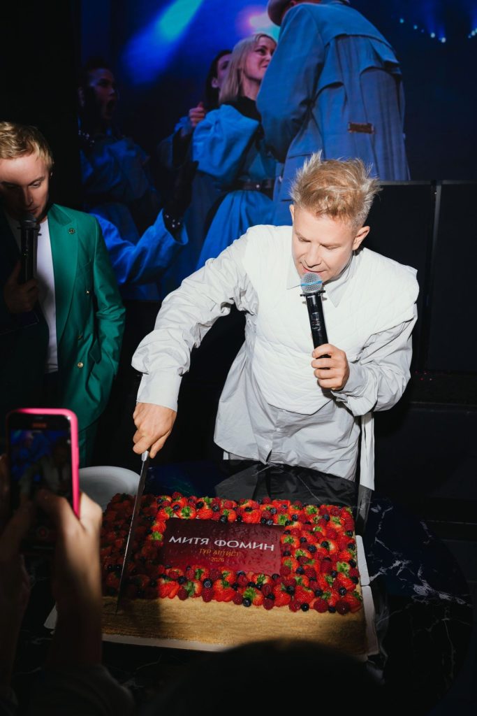 Откровением вечера стал выход на сцену Мити Фомина с флагманским концертным номером «Артист», который неизменно открывает шоу в каждом городе тура. За фортепиано Мите аккомпанировал автор десятков хитов российской сцены и альбома «Артист», композитор Алексей Романоф. А завершился вечер огненным диджей-сетом королевы вечеринок DJ Katya Guseva. А после танцев гостей ждал сладкий сюрприз — 30-килограммовый ягодный торт — от кондитерской «Особенный Наполеон», которая хранит семейные десертные традиции с 1957 года.