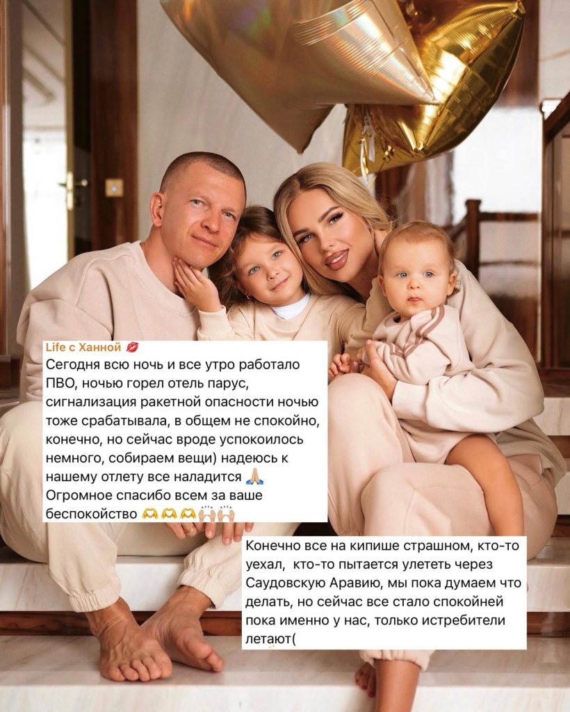 Застрявшая с семьей в Дубае Ханна делится обстановкой в городе. По словам певицы, всю ночь в Эмиратах работала система ПВО, но днём стало спокойнее. Решение об эвакуации они пока не приняли.